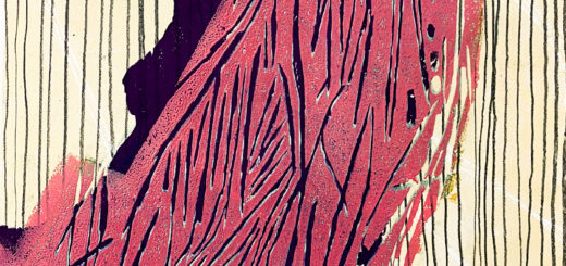Die letzten drei Bilder (SW) sind im Original 50×75 cm, gemischte Technik: Seidenpapier, Lens Tissue, Wachs, Tusche, Ölfarbe.
